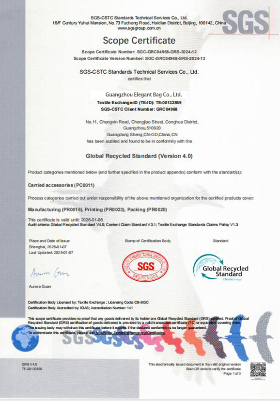 Guangzhou Elegant Bag Co., Ltd. is a professional bag manufacturer based in Guangzhou, China, specializing in the production of tote bags and other high-quality bags. Our commitment to being the best shows in everything we do, from carefully selecting the highest quality materials to thoroughly inspecting each product before it ships out, ensuring that each product meets the highest standards of quality. Our team has experts with over 10 years of bag-making experience. This wealth of expertise is applied within our workshop, sales, and design processes, resulting in creative and trendy products that are both functional and fashionable. As a result, Guangzhou Elegant Bag Co., Ltd. has built a solid reputation as a popular choice among customers. Our main markets include North America, Western Europe, and Oceania. We strive to uphold the principles of ISO 9001:2008 Quality Management System certificate,Our factory have passed the BSCI and GRS certificates,and own import and export license., our factory takes advantage of Modern technology to ensure excellent quality in our products. We are committed to providing considerate services and timely delivery, earning us the trust of customers globally. Whether you're looking for a classic design or something more modern, we have the expertise to deliver a product that meets your expectations. Our bags are not just accessories; they are a reflection of our commitment to quality, style, and functionality. We invite you to explore our diverse range of tote bags and see how our focus on quality and creativity can boost your business.